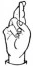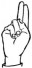 На ћирилици написано МИЊА ХРЊАК састоји се из 9 слова [?]. Исписано ћириличном једноручном азбуком за глувонеме: